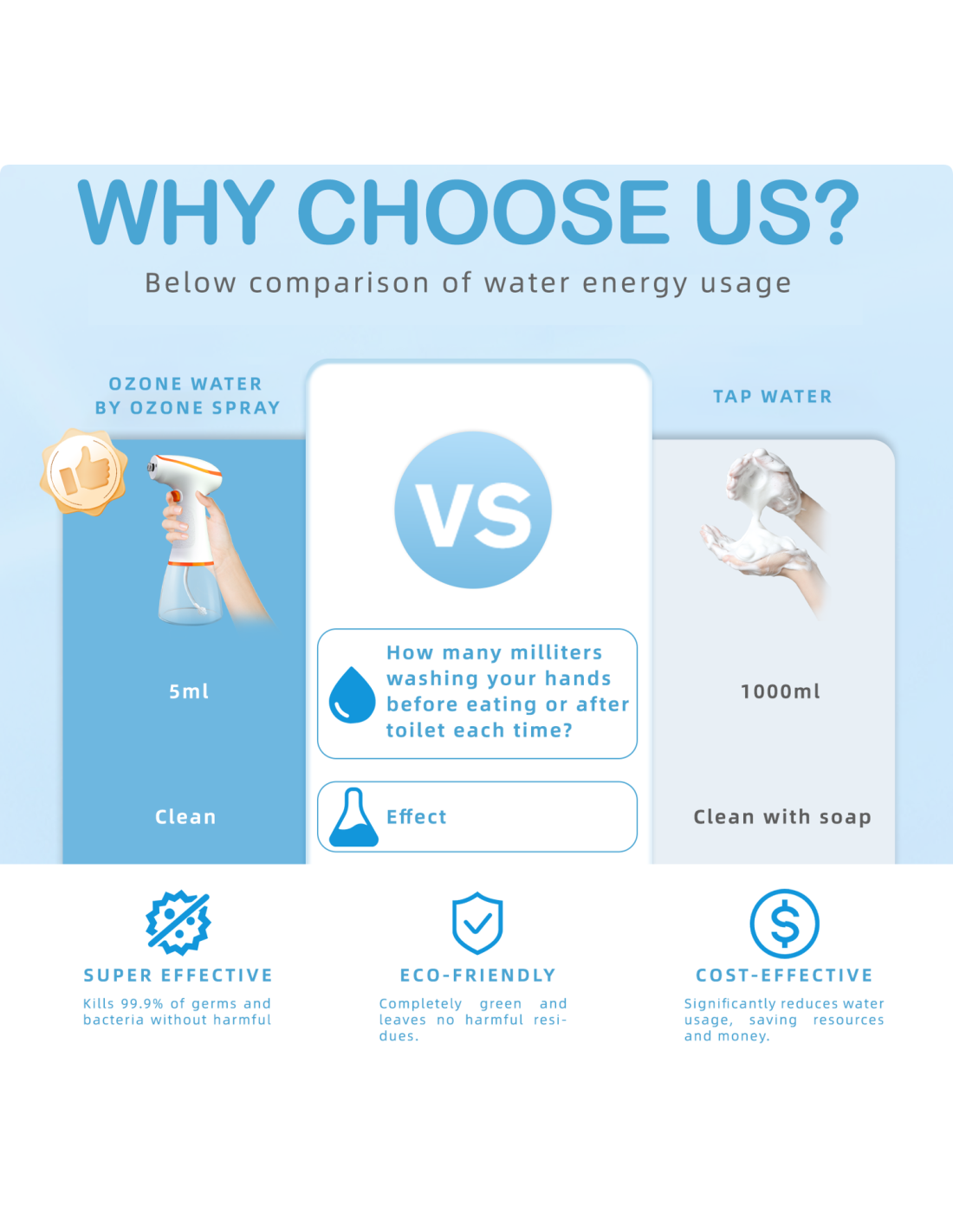 Com um reservatório de 350 ml e gatilho elétrico, o SteriH2O3 é fácil de manusear, proporcionando conforto e segurança tanto para cuidadores quanto para os próprios utentes. Graças à nano-atomização, o jato de ozono aquoso penetra profundamente nas superfícies e na pele, eliminando mais de 99,9% de bactérias, vírus e fungos, sem deixar resíduos químicos.